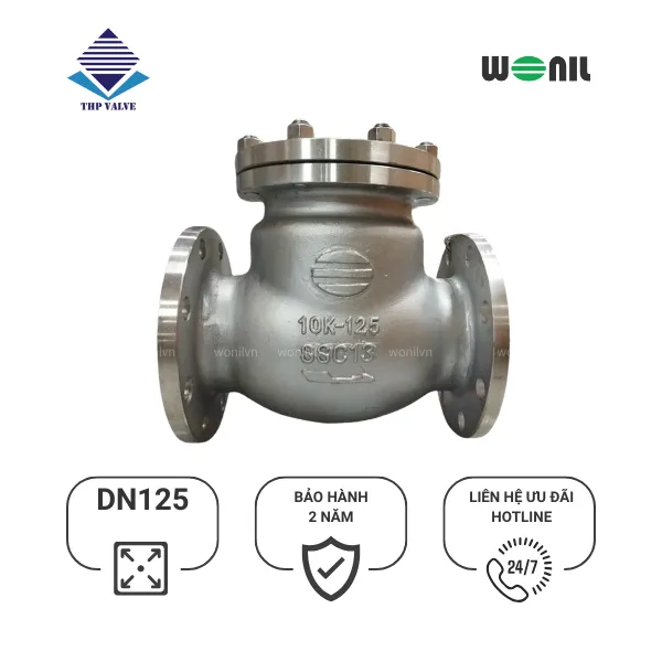 Van 1 chiều Wonil Lá Lật Mặt Bích Inox DN125